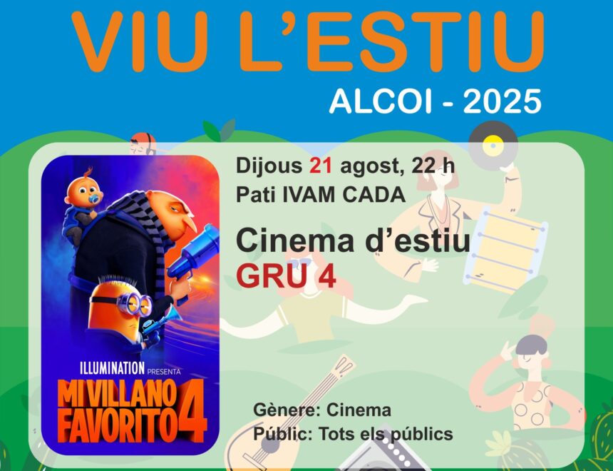 El Ayuntamiento de Alcoi presenta la programación cultural “Viu l’Estiu 2025”, un completo ciclo de actividades al aire libre que se desarrollará desde principios de junio hasta septiembre, con propuestas para toda la familia y gustos muy variados: cine, música, teatro, circo y danza contemporánea. A continuación detallamos las actividades del programa que se realizarán en el patio del IVAM CADA